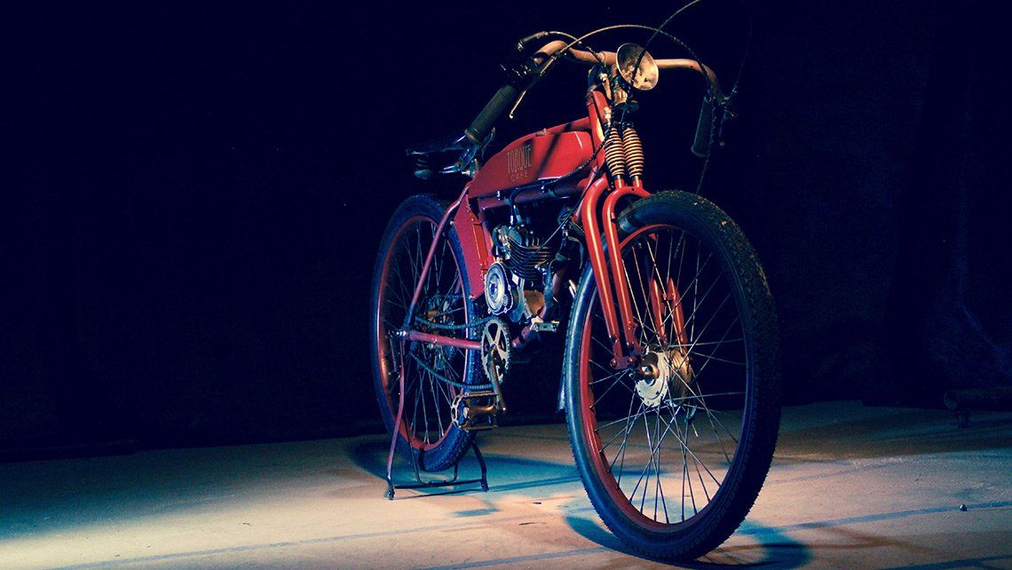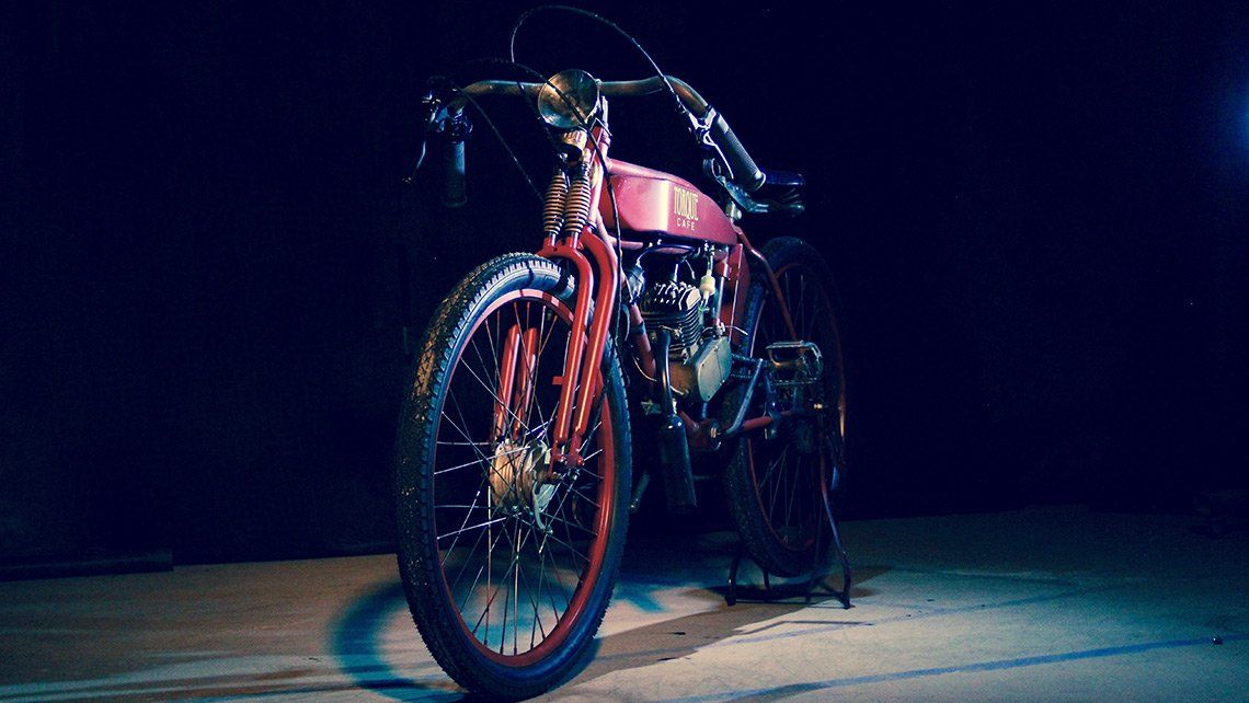 I spent the next several years anticipating the opportunity to bring back the adventure of wrenching and riding until I was introduced to Board Track Racing through an online article I stumbled across. I poured over the rich history of the early motorcycle and became a student of the simpler mechanics and clean lines of these beauties. The early motorcycles were, put simply, a bicycle with a motor jammed into it. When I started reading more about the ingenuity, hunger for speed, and the no-excuse-type-of-wrenching that I experienced growing up, I was inspired to build my first Board Track Racer tribute bike. The early Board Track Racing guys didn’t ride with brakes, had no throttle, and would race on embankments of 60 degrees to catapult them into the straightaways. These men were dangerous thrill seekers with an addiction to speed. Although Board Track Racing was short-lived because of its many dangers, these men left everything on the track and paved the way to modern racing with their oil stained faces and foot-long splinters. The bikes I build stand as tributes to the early days of motorcycling and the men who rode them.